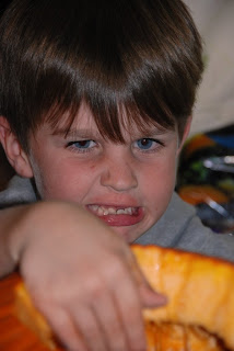 Don’t mind the warts (on the pumpkin, not my son) he had a very nice shape–until I performed the craniotomy…