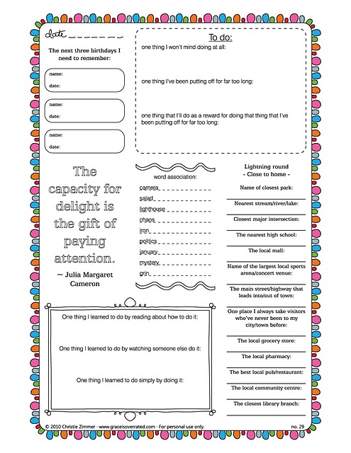 Christie has been creating these free, downloadable journaling pages for months.  (I’m fairly certain I’ve snagged every single one.)  I love the pages because they offer prompts and thoughts that might never occur to me as I stare at a blank page with a pen in my hand.